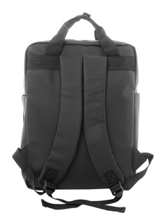 Voděodolný batoh z RPET s hlavní přihrádkou na zip, 2 předními kapsami na zip, bočními kapsami a polstrovanou přihrádkou na notebook (15") a tablet (10"). S polstrovanými zády a ramenními popruhy. Polyester RPET 600D potažený PU, s výrazným štítkem RPET.
