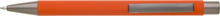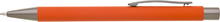Kovová propiska CAGERI SOFT s hnědo-černými doplňky, s oranžovým pogumovaným povrchem. Velkoobsahová modrá náplň.
