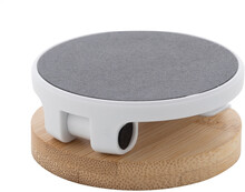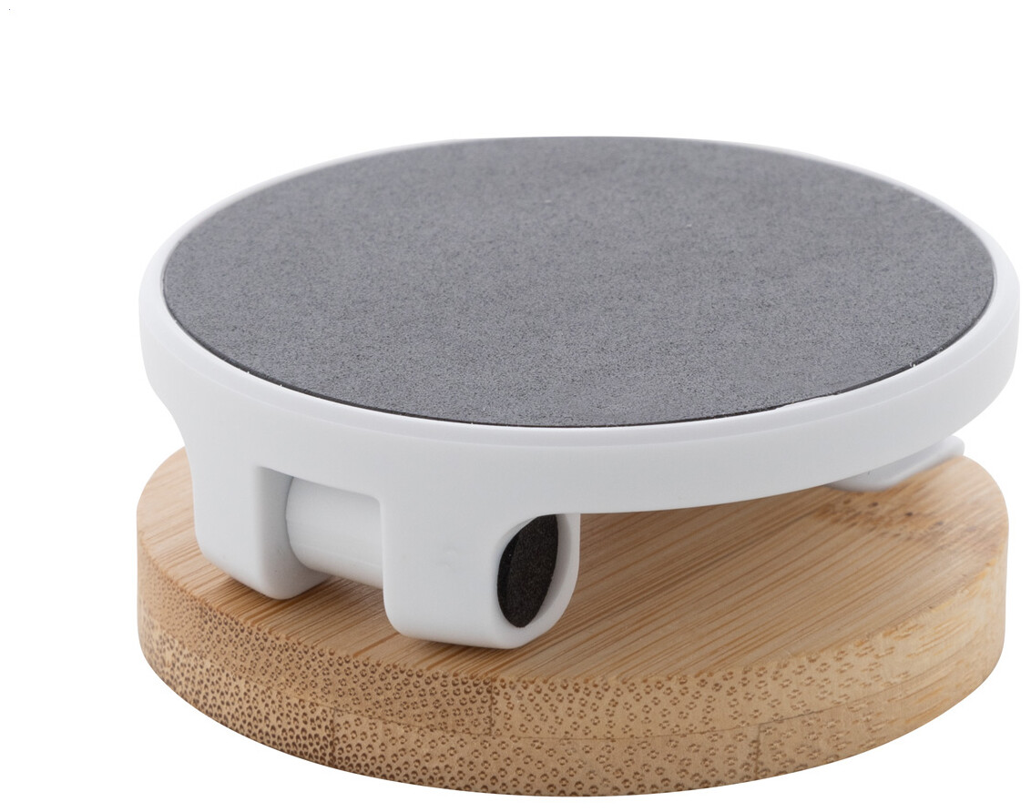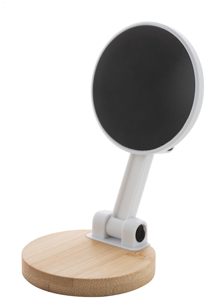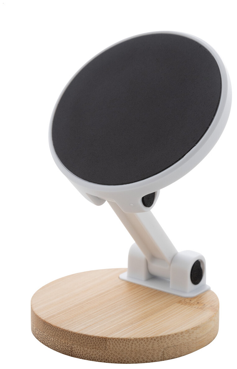 Magnetický stolní držák mobilního telefonu z bambusu a recyklovaného ABS. Včetně samolepícího kovového kroužku pro použití magnetické funkce na jakémkoli zařízení. Kompatibilní s iPhone® 12 nebo novějším.