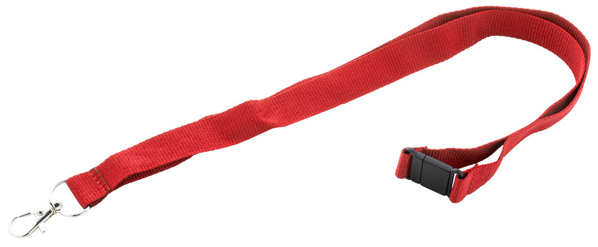 RPET polyesterový lanyard s kovovou karabinou a bezpečnostní přezkou.