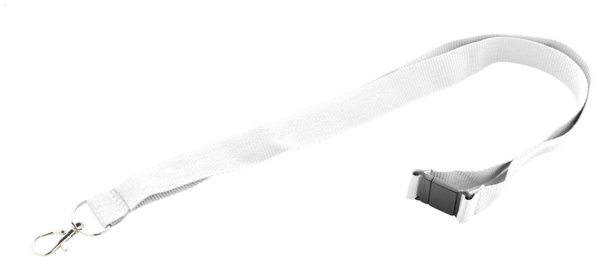RPET polyesterový lanyard s kovovou karabinou a bezpečnostní přezkou.