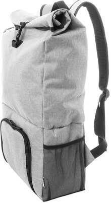 Rolltop RPET chladící batoh s PEVA polstrovanou chladicí přihrádkou na zip na jídlo. S hlavní přihrádkou na sponu, přední kapsou na zip, bočními síťovanými kapsami a polstrovanými ramenními popruhy. 600D RPET polyester s výrazným štítkem RPET.