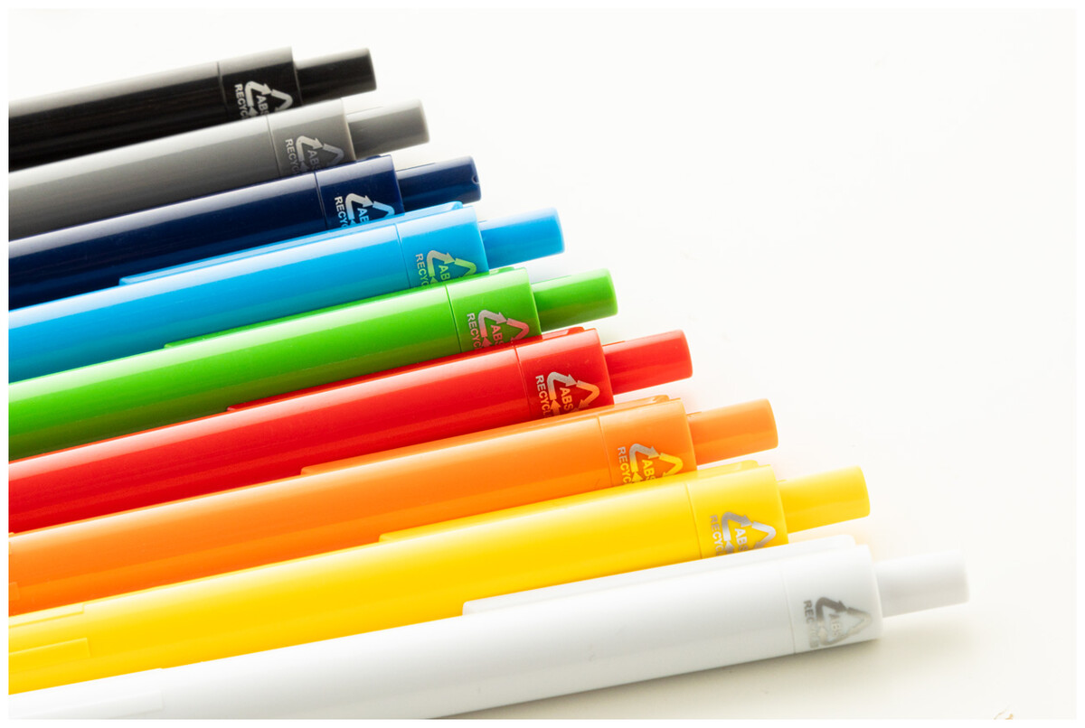 Kuličkové pero z recyklovaného ABS plastu s modrou náplní.