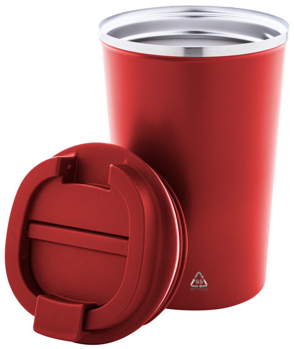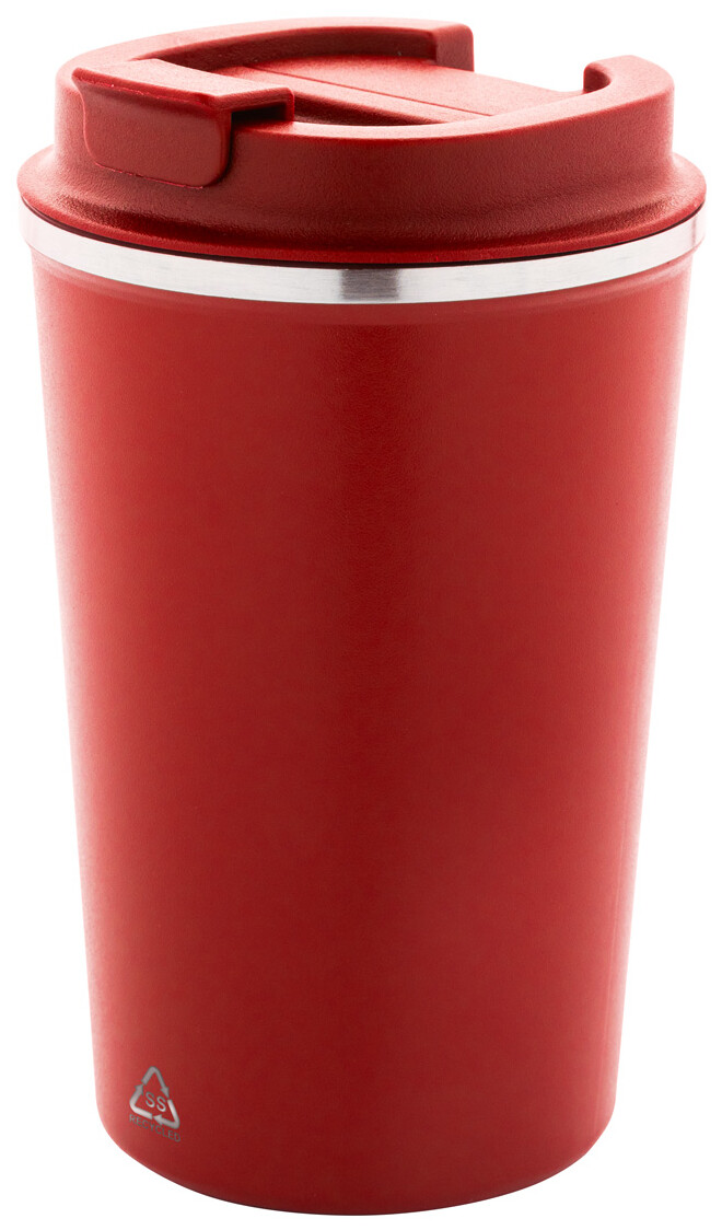 Dvoustěnný termo hrnek z recyklované nerezové oceli s víčkem na pití z PP. 350 ml.