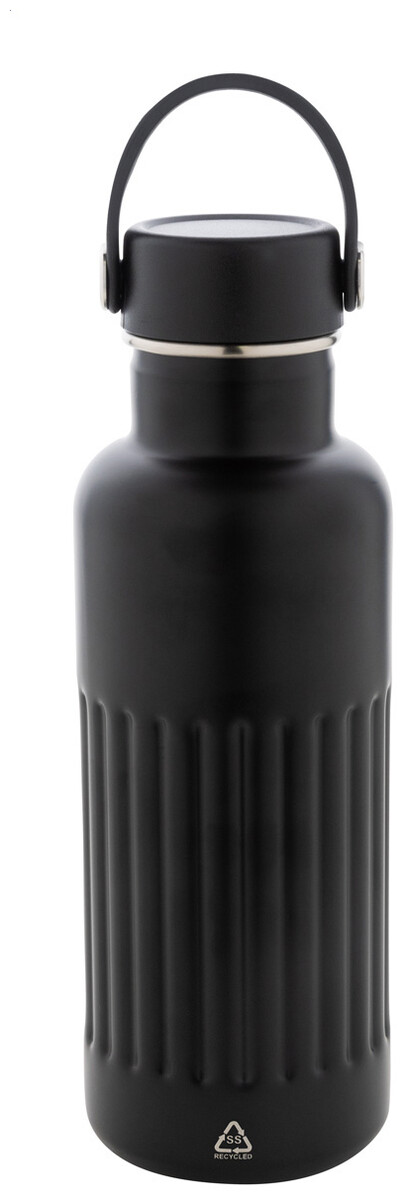 Dvoustěnná vakuově izolovaná láhev z recyklované nerezové oceli s PP plastovým přepravním víčkem. 500 ml.