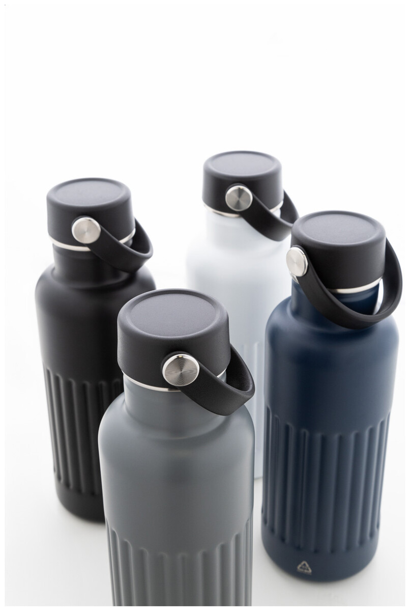 Dvoustěnná vakuově izolovaná láhev z recyklované nerezové oceli s PP plastovým přepravním víčkem. 500 ml.