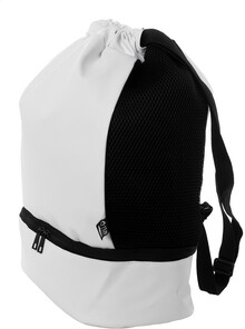 Prémiový vak se stahovací šňůrkou z RPET s přihrádkou na boty na zip, bočními vložkami ze síťoviny a širokými popruhy. Polyester 600D RPET potažený PU s výrazným štítkem RPET.