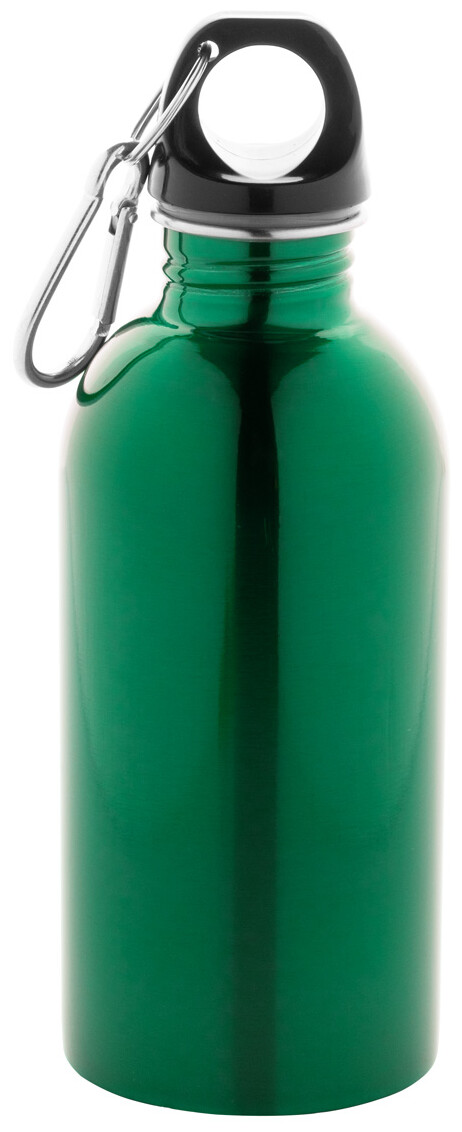 Láhev z recyklované nerezové oceli s hliníkovou karabinou, 400 ml.