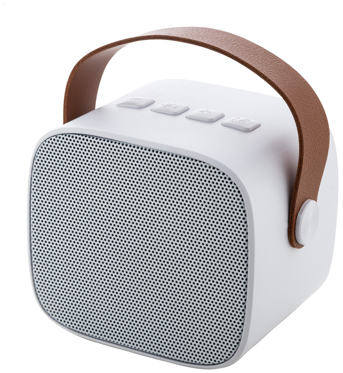 Bezdrátový reproduktor z recyklovaného ABS s popruhem z PU kůže a vestavěnou dobíjecí baterií (1200 mAh). Včetně nabíjecího kabelu USB.