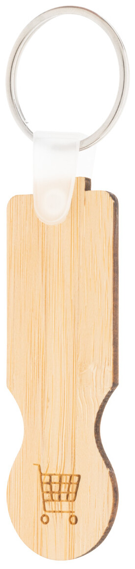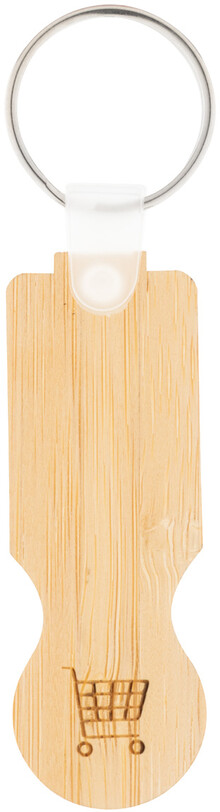 Přívěšek na klíče z bambusové překližky se žetonem do nákupního vozíku.