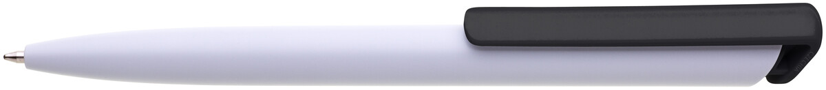 Česká propiska BOIA v minimalistickém designu bílého oválného těla s dynamickým tvarem černého masivního klipu. Tělo i klip nabízí velký prostor pro značení logem zákazníka. Materiál plast, náplň velkoobsahová, modře píšící. BOIA je vyráběna v České republice.