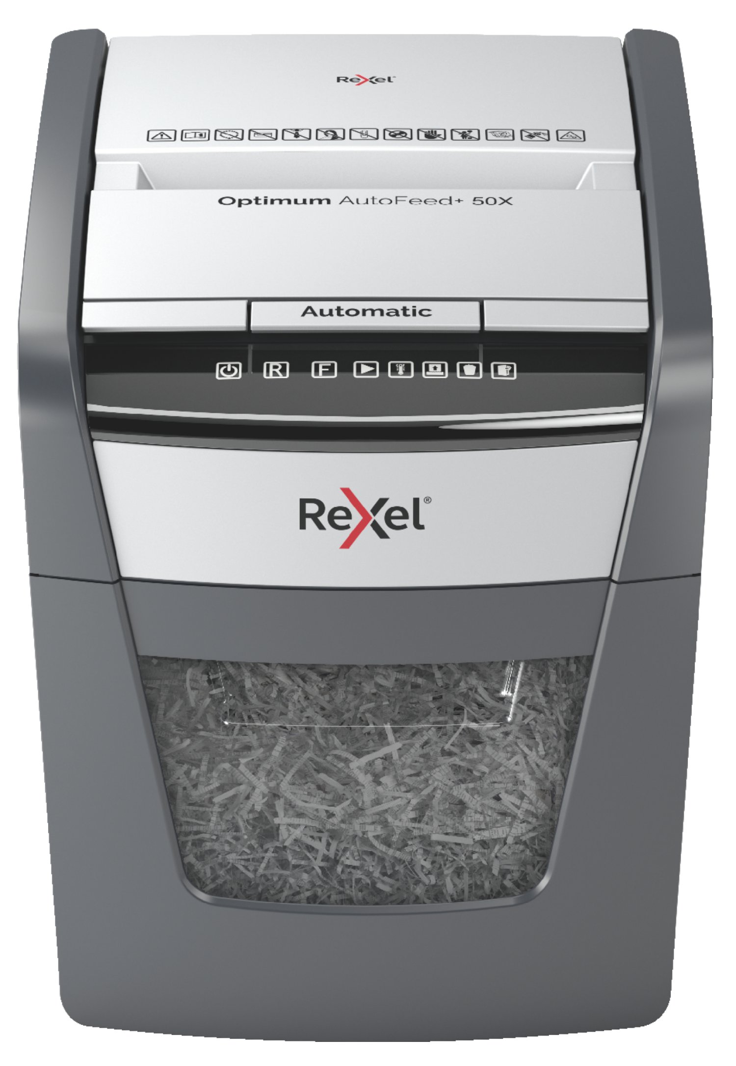 Skartovačka Optimum AutoFeed 50X automaticky skartuje až 50 listů papíru A4 (80 g /m2) křížovým řezem P-4 (4 x 28 mm). Tato automatická skartovačka je díky kompaktnímu 20L koši ideální pro použití v domácnosti nebo v domácí kanceláři. Není třeba ručně podávat papír nebo nejdříve odstraňovat svorky a kancelářské sponky, tento automatický skartovač papíru udělá vše za vás.