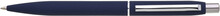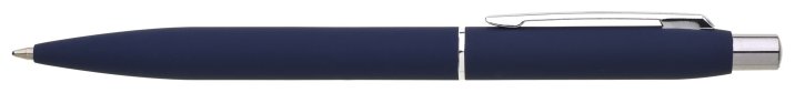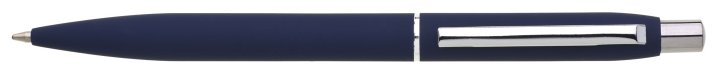 Kovová tmavě modrá pogumovaná propiska se stříbrnými doplňky a efektem lesklého stříbrného laseru.
