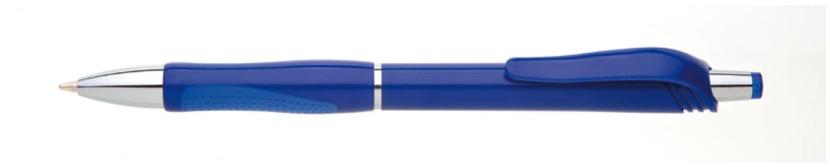 Modrá, plastová propiska s pochromovanými doplňky jako jsou klip, tělo cvakátka a proužek uprostřed těla tužky. Grip je částečně pogumovaný v barvě tužky, stejně jako klip a vrchní část cvakátka. Náplň X20, hrot 1mm.