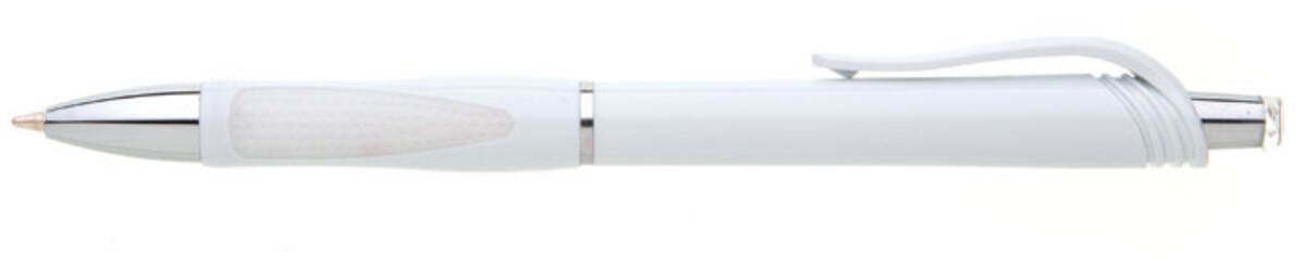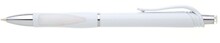 Bílá, plastová propiska s pochromovanými doplňky jako jsou klip, tělo cvakátka a proužek uprostřed těla tužky. Grip je částečně pogumovaný v barvě tužky, stejně jako klip a vrchní část cvakátka. Náplň X20, hrot 1mm.