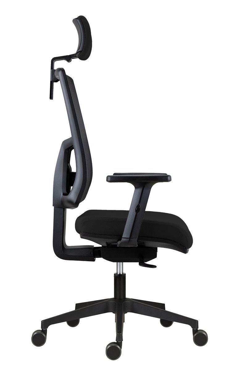 kancelářská židle s čalouněným sedákem, černou síťovinou na opěráku a volitelným čalouněným podhlavníkem