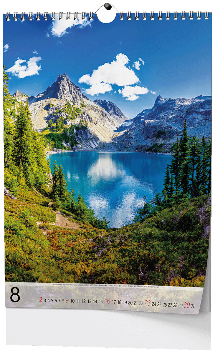 Nástěnný kalendář s obrázky známých hor z celého světa.