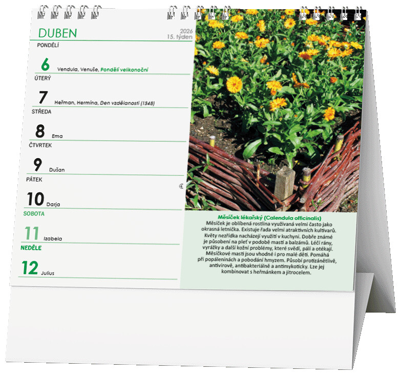 Ideální kalendář za ideální cenu s týdenním kalendáriem a v praktickém formátu, s informacemi o léčivých rostlinách.