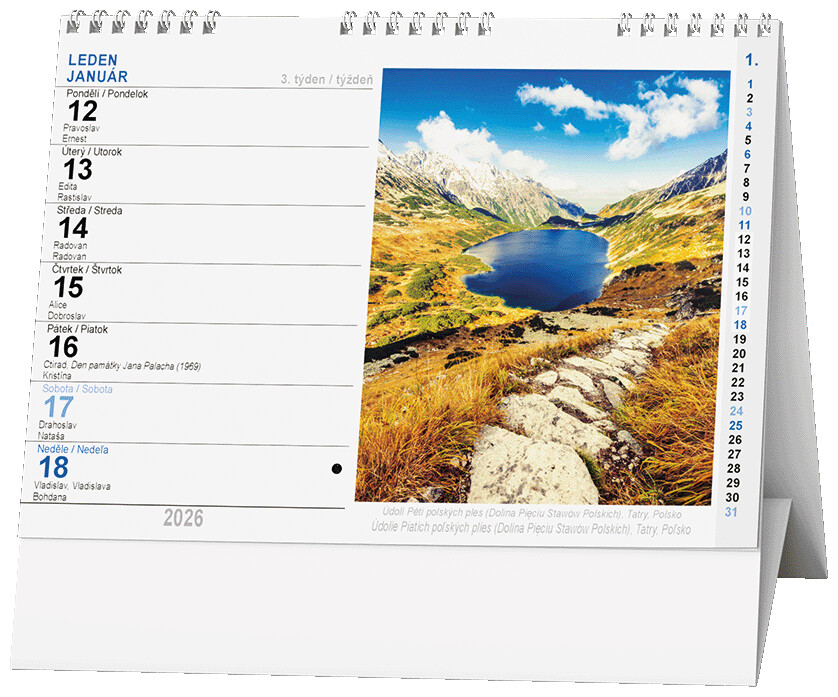 Stolní kalendář s týdenním kalendáriem s obrázky hor našich sousedů na Slovensku.
