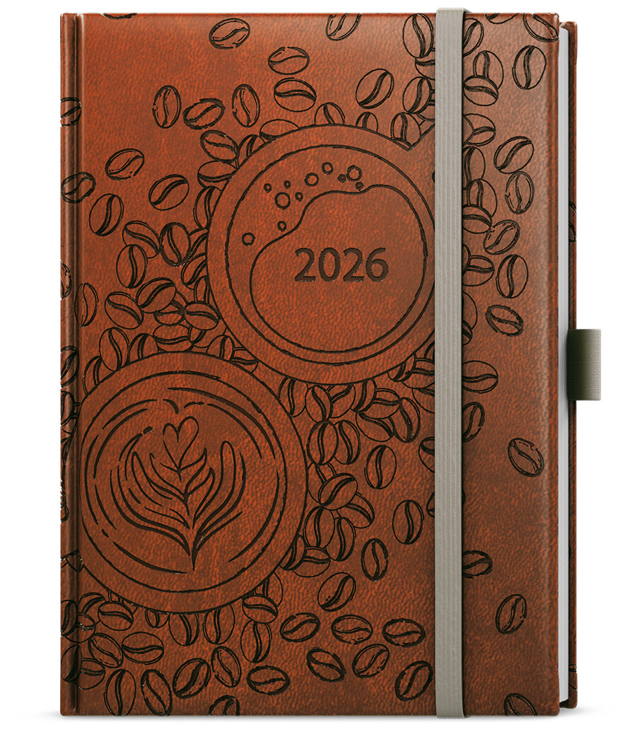 Týdenní diář v oblíbené vivelle s hnědou celoražbou s motivem Kávových zrn. Diář v oblíbeném formátu s velkým prostorem pro poznámky a plánování.