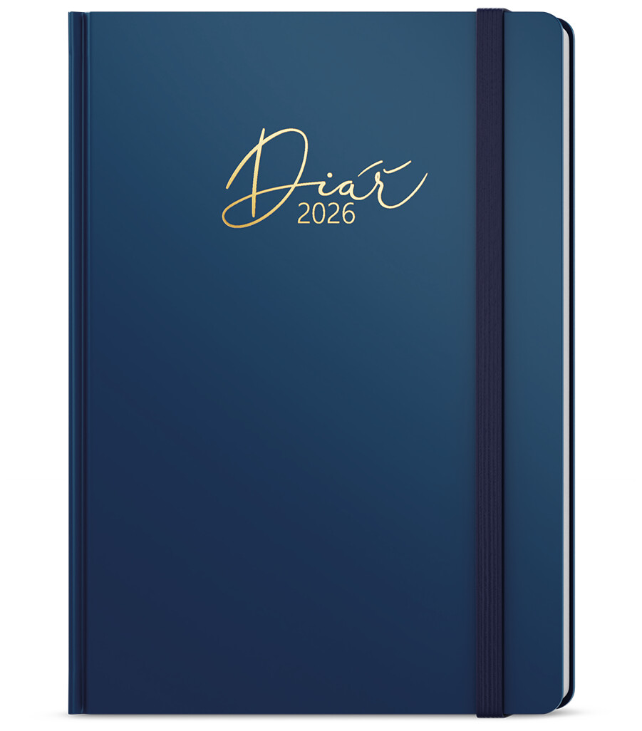 Denní diář A5 má krásnou populární barvu a efektní zlatou ražbu roku. Každý den na jedné straně Vám dá prostor mnoha poznámek a časového plánování.