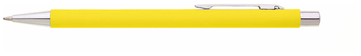 Tenká, jednoduchá propiska s žlutým pogumovaným tělem a chromovými doplňky. Náplň X20, modře píšící.