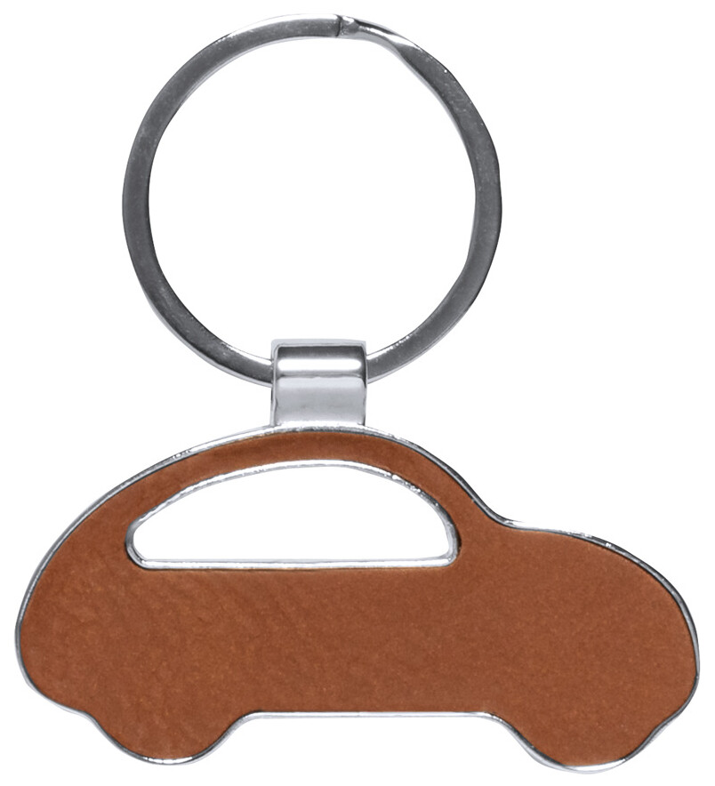 Kovový přívěsek na klíče potažený recyklovanou kůží.