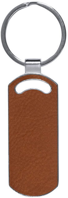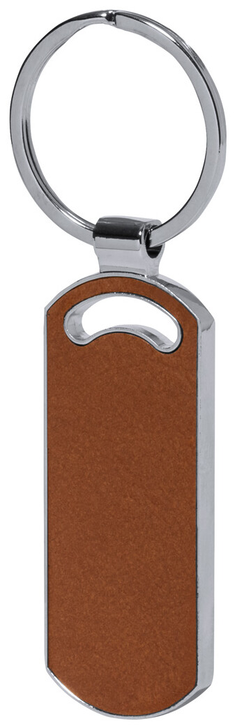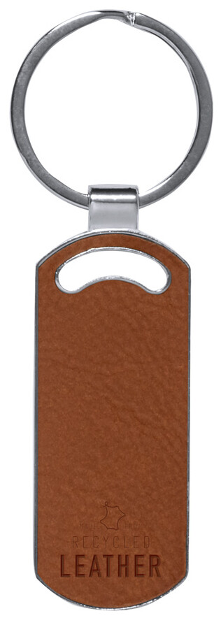 Kovový přívěsek na klíče potažený recyklovanou kůží.