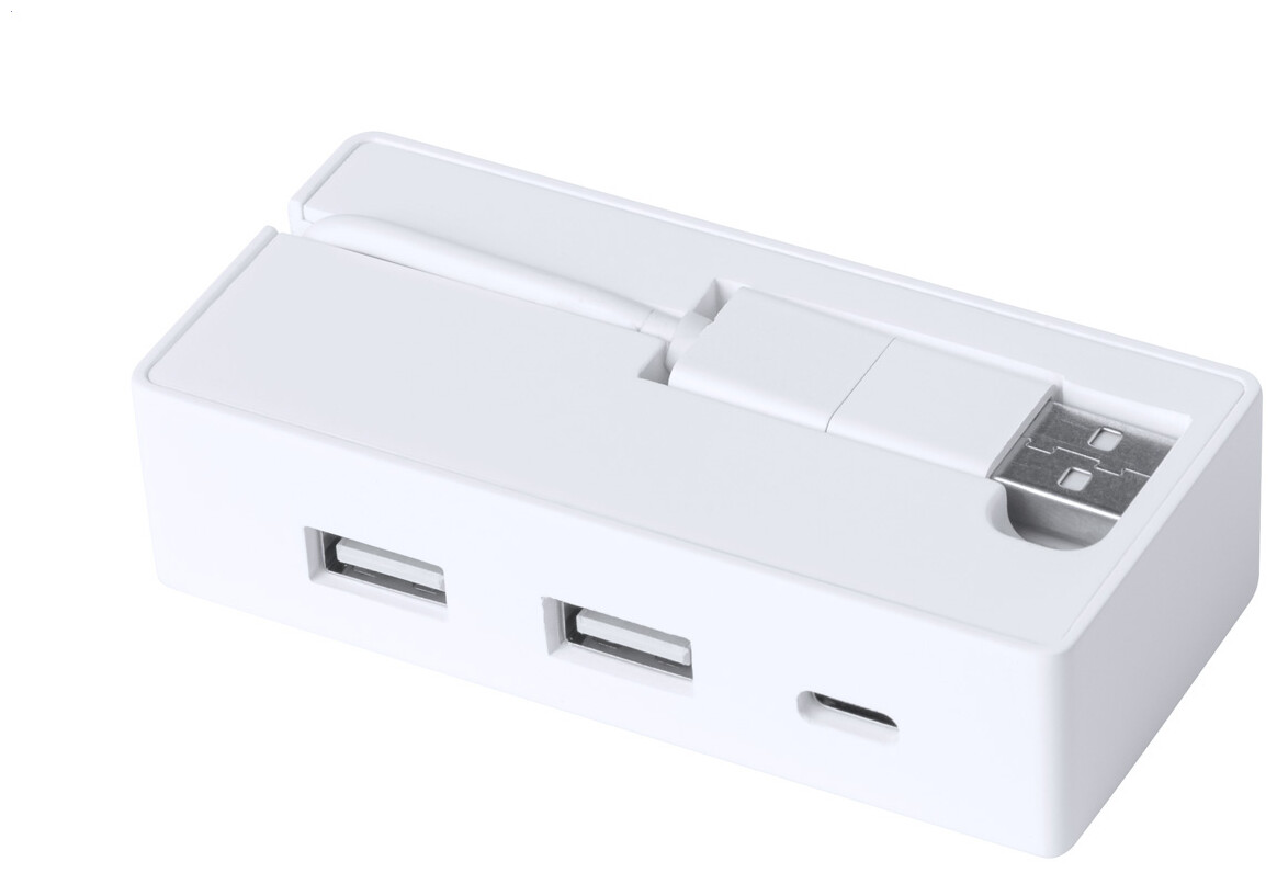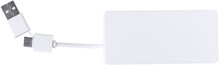 USB hub z recyklovaného ABS plastu se 2 USB a 1 USB-C portem, USB 2.0. Včetně kabelu s připojením USB a USB-C.