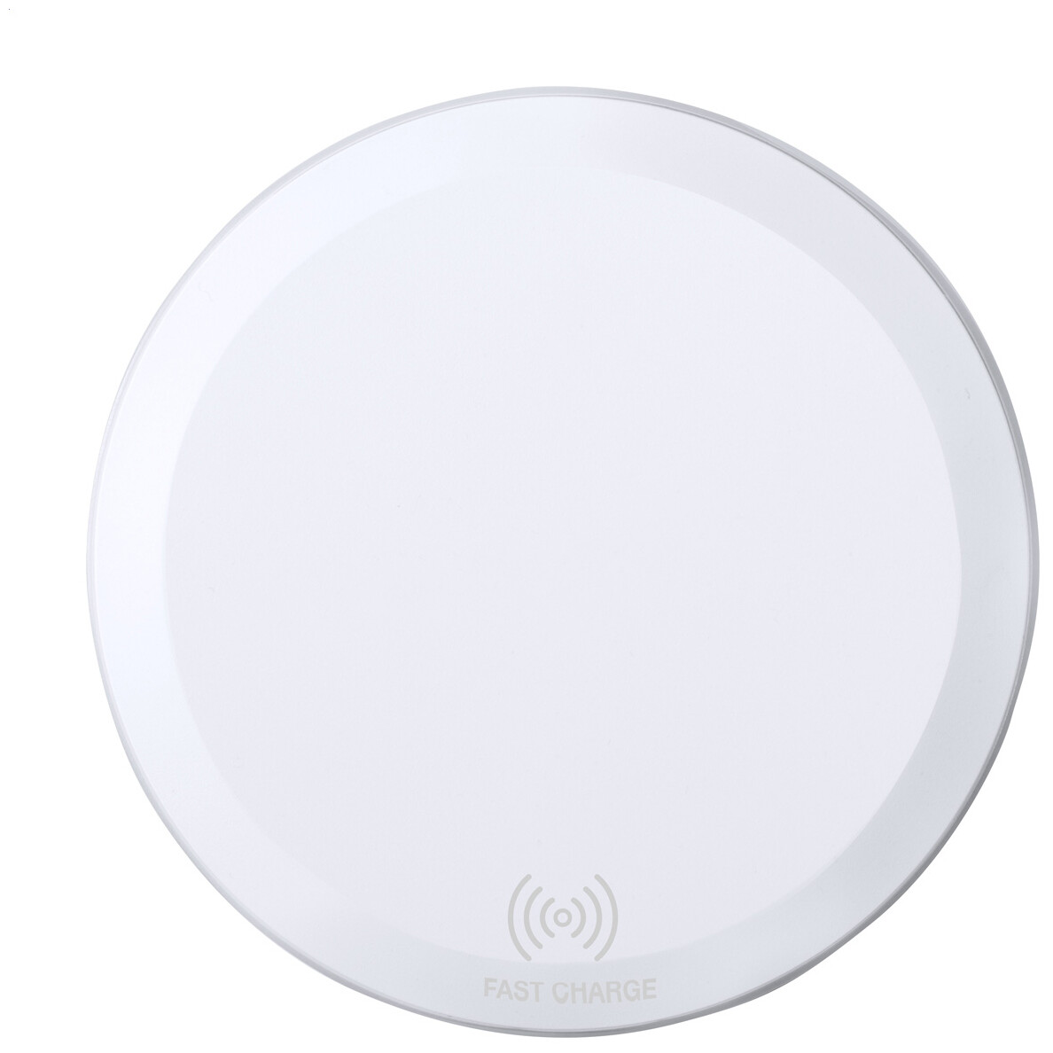 Bezdrátová rychlonabíječka (10W) v plastovém pouzdře s LED indikátorem nabíjení a protiskluzovou základnou. Včetně nabíjecího USB kabelu.