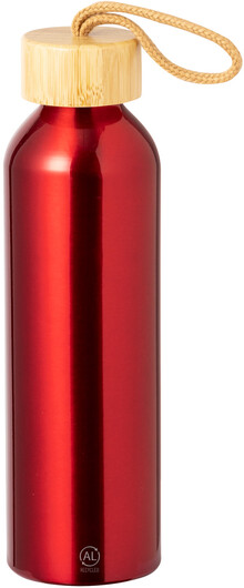 Láhev z recyklovaného hliníku s bambusovým uzávěrem, 600 ml.
