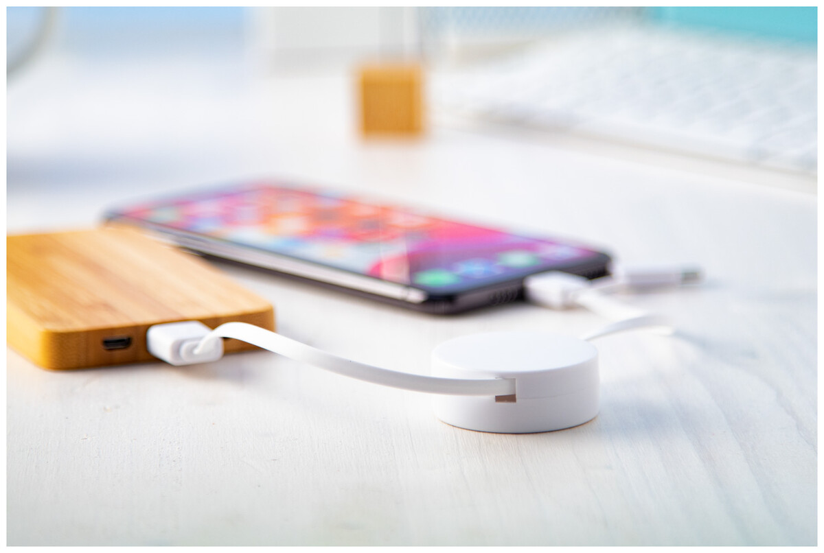 USB nabíjecí kabel s přívěškem na klíče Enari, bílá