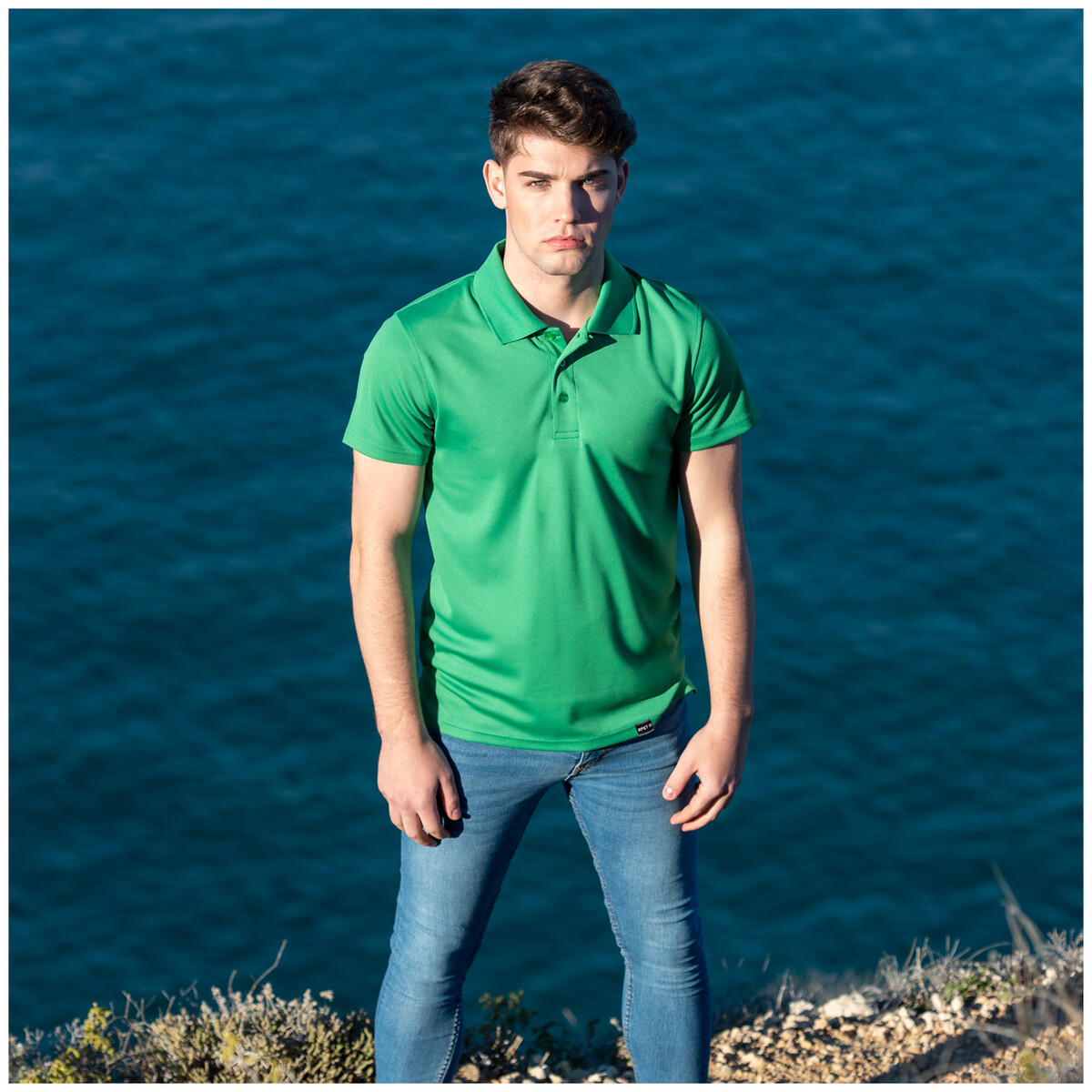 100% RPET polyester, prodyšná polokošile se třemi knoflíky na krku ve stejné barvě. 180 g/m2. S výrazným štítkem RPET.