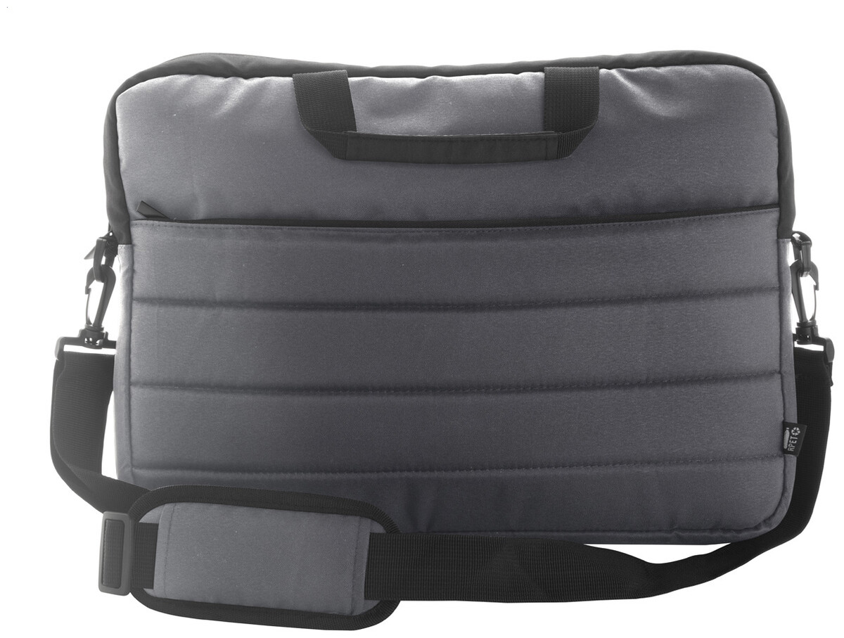 Plně polstrovaná taška na dokumenty RPET s přihrádkami na zip, polstrovaná přihrádka na notebook (15 "), popruh na vozík a nastavitelný popruh přes rameno. Polyester 300 RPET. S výrazným štítkem RPET.