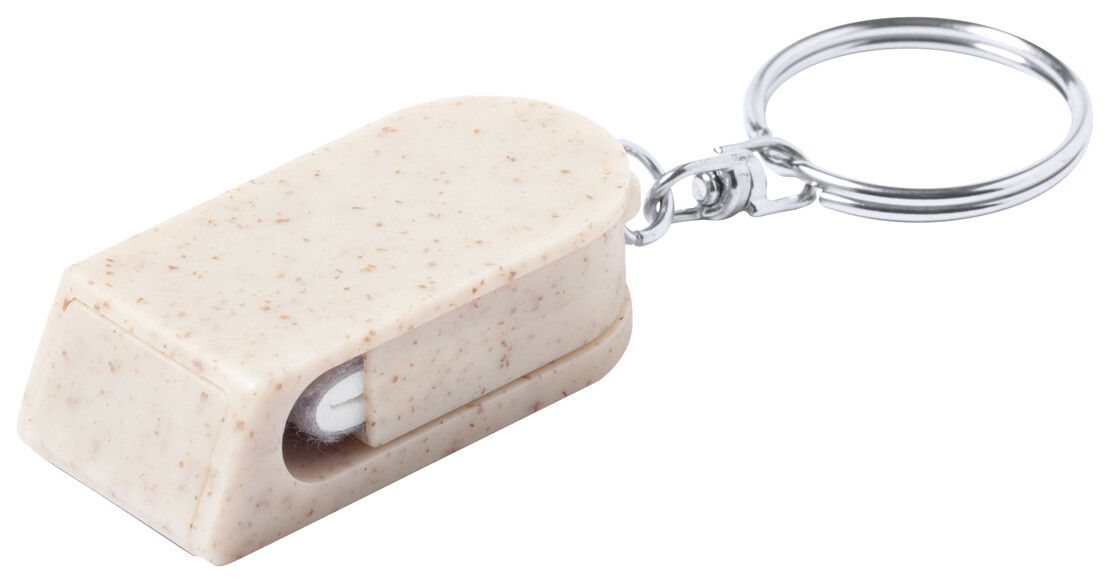 Ekologický plastový držák na mobil z pšeničné slámy s čističem obrazovek a kovovým kroužkem na klíče.