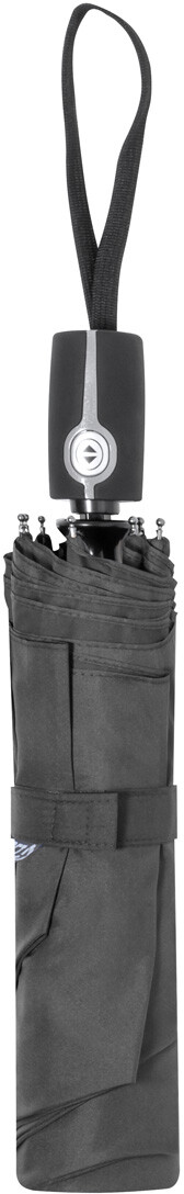 Plně automatický (otevřít/zavřít), větruodolný skládací deštník s 8 panely v pouzdře v odpovídající barvě. S kovovým rámem, žebrováním ze skelných vláken a plastovou rukojetí. Pongee 190T RPET. S výrazným štítkem RPET.