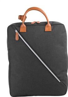 Batoh s přihrádkami na zip, vypolstrovanou kapsou na laptop, ucha z PU kůže a nastavitelný ramenní popruh. 300D polyester.