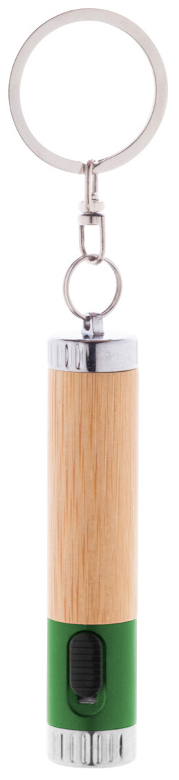 Mini svítilna z bambusu a recyklovaného ABS plastu s 1 LED a kovovým kroužkem na klíče. S knoflíkovou baterií.