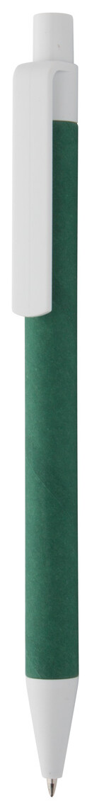 Kuličkové pero vyrobené z recyklovaného papíru a bílého plastu, s modrou náplní.