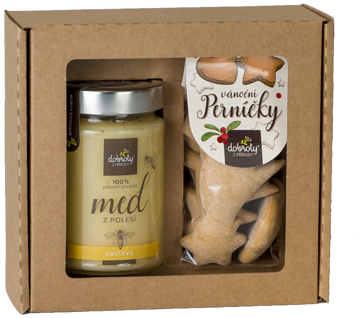 Perníčky s vánočními motivy 40g + Med pastový z Polesí