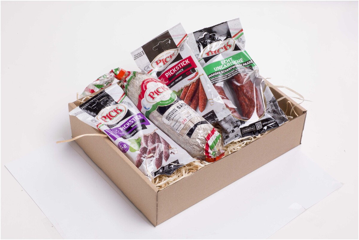Uherský salám Pick 400 g, maďarská klobása Makói 200 g pálivá, Pick Stick lahůdkové 60 g, Pick Stick pálivé 60 g, trvalivost: 40 dní
