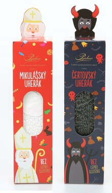 Tematické krabičky čerta (černé střevo) nebo Mikuláše (bílé střevo) s uherským salámem 260 g