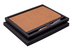 Poznámkový blok, zápisník v deskách z recyklované kůže s kovovou propiskou