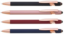 Kovové kuličkové pero se soft povrchem – elegantní psací potřeba s doplňky v růžovo-zlaté barvě, která kombinuje moderní design a funkčnost. Vhodná pro každodenní použití i jako stylový dárek.