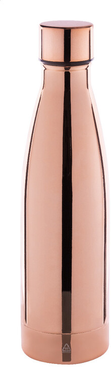 Dvoustěnná vakuově izolovaná měděná láhev s vysoce lesklou kovovou povrchovou úpravou, 500 ml. Měděná izolace udrží nápoje teplé 12 hodin a studené 24 hodin.