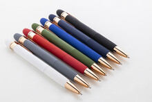 Kuličkové pero z recyklovaného hliníku s pogumovaným tělem a detaily v růžovo-zlaté barvě. Se speciálním povlakem pro zrcadlové laserové gravírování v růžovo-zlaté barvě. S modrou náplní.