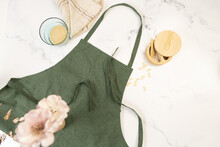 Kuchyňská zástěra ze 70% recyklované bavlny a 30% RPET polyesteru, 180 g/m2.
