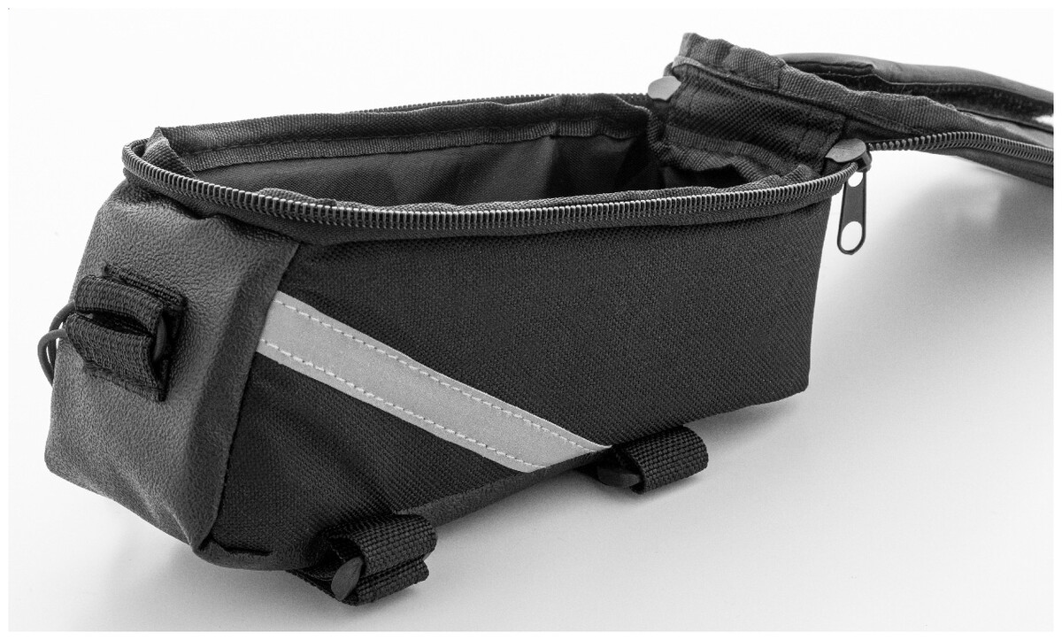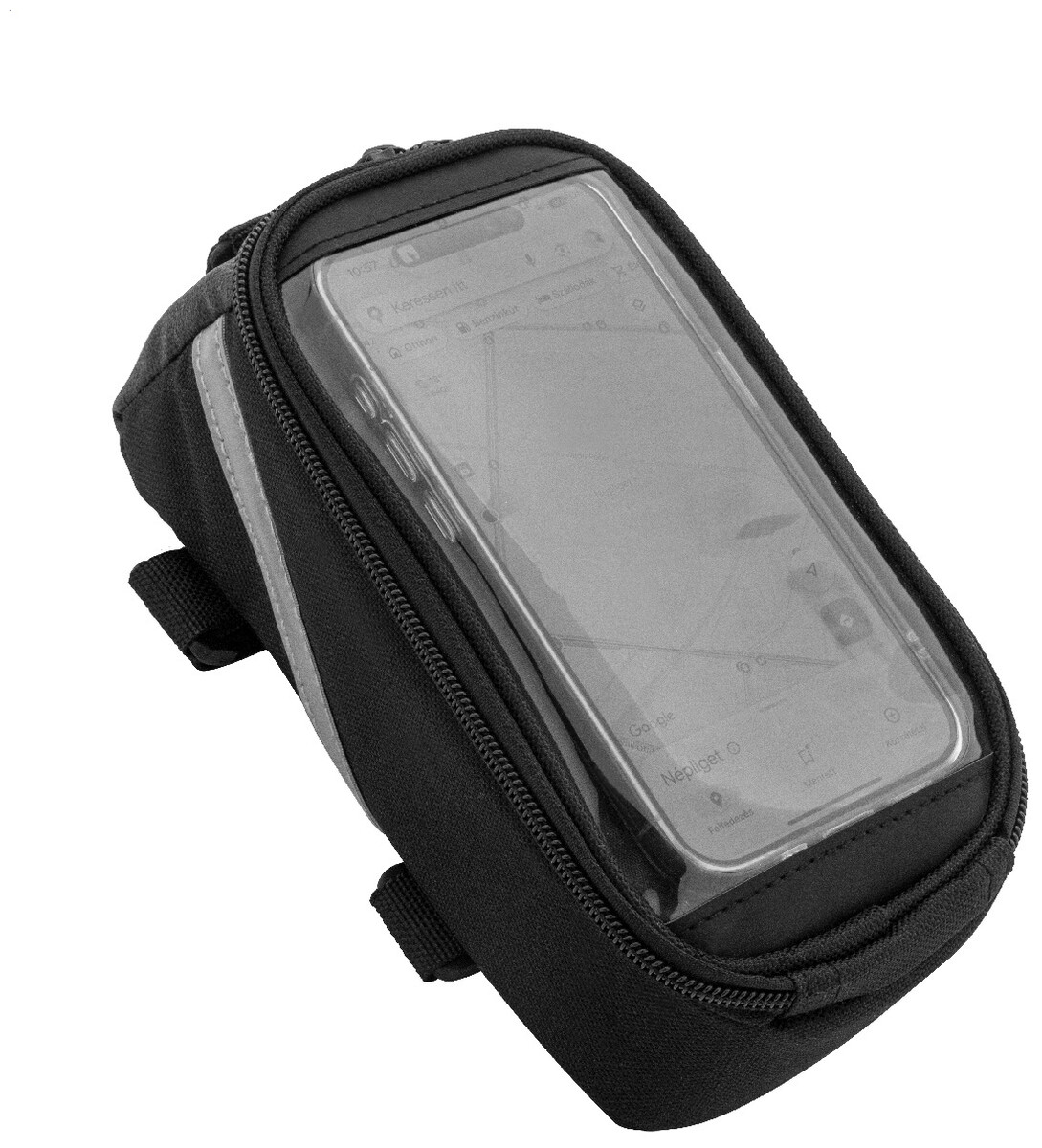 Brašna na rám kola z RPET s přihrádkou na zip, kapsou na mobil s dotykovou obrazovkou, nastavitelnými popruhy na suchý zip a reflexními proužky. Polyester 600D RPET s výrazným štítkem RPET.
