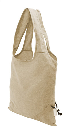 Skládací nákupní taška ze 70 % recyklované bavlny a 30 % polyesteru RPET, 140 g/m2. S výrazným štítkem z recyklované bavlny.