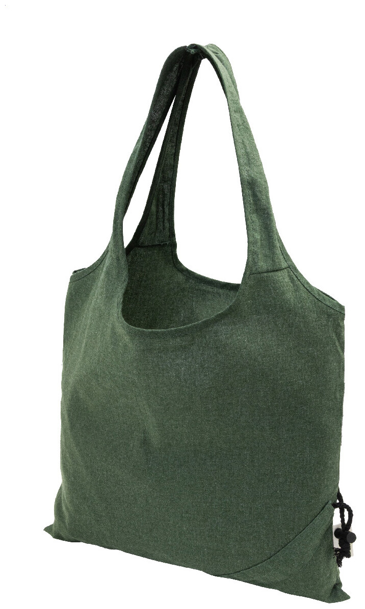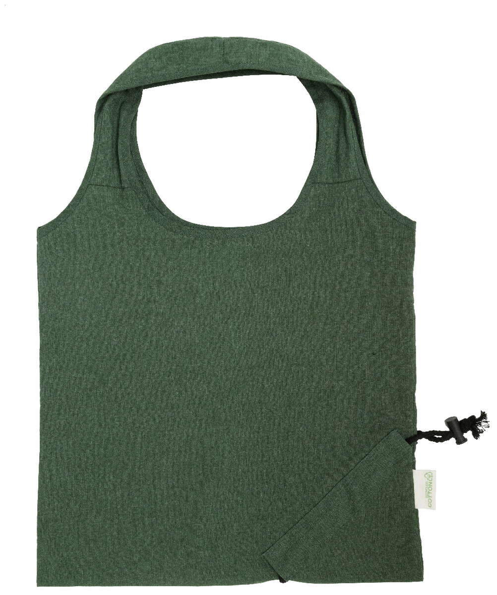 Skládací nákupní taška ze 70 % recyklované bavlny a 30 % polyesteru RPET, 140 g/m2. S výrazným štítkem z recyklované bavlny.